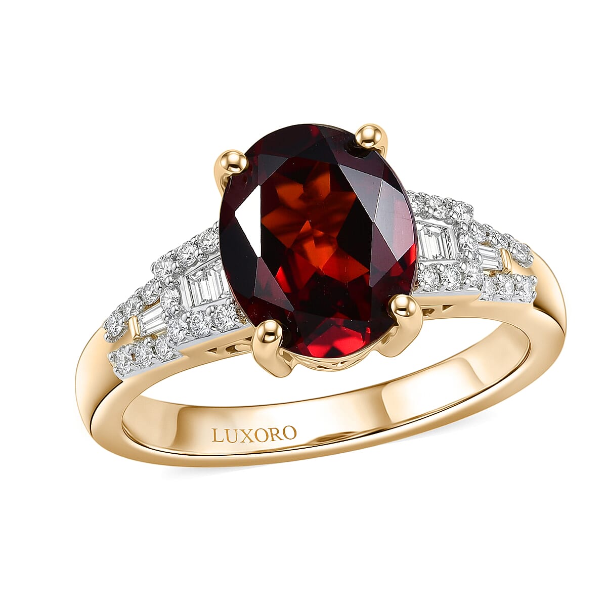 Luxoro AAA Red Zircon and Diamond I2 4.10 ctw Royal Heritage Glow Ring in 10K Yellow Gold (Size 6.0)