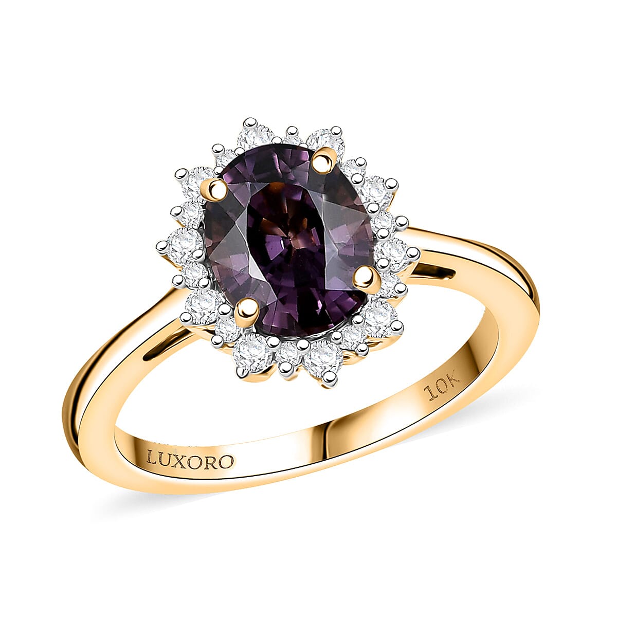 Luxoro AAA Royal Lavender Spinel and G-H I2 Diamond 2.30 ctw Violet Majesty Ring in 10K Yellow Gold (Size 8.0)