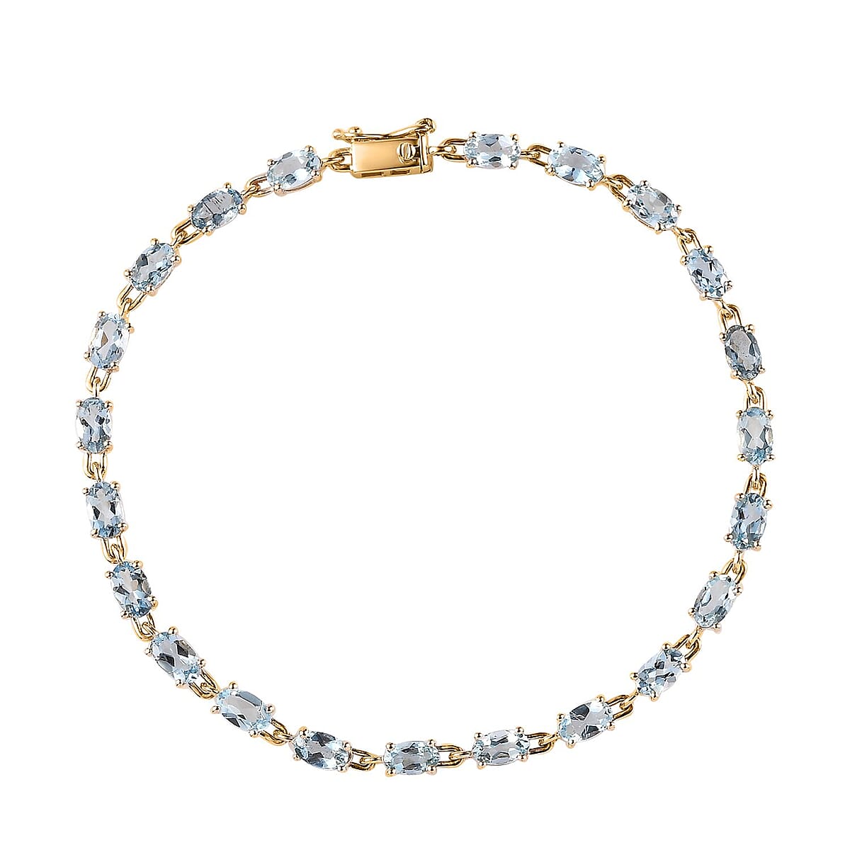 Luxoro AAA Santa Maria Aquamarine 4.35 ctw Link Bracelet in 14K Yellow Gold (7.25 In)
