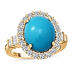 Luxoro AAA Sleeping Beauty Turquoise and White Zircon 5.65 ctw Halo Ring in 10K Yellow Gold (Size 7.0)