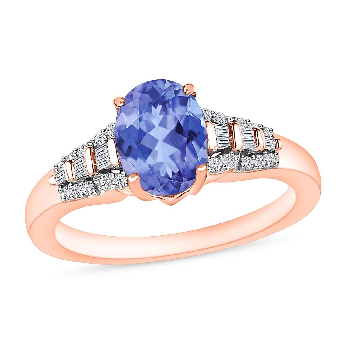 Luxoro AAA Tanzanite and G-H I2 Diamond 1.50 ctw Ring in 14K Rose Gold (Del. in 10-12 Days)