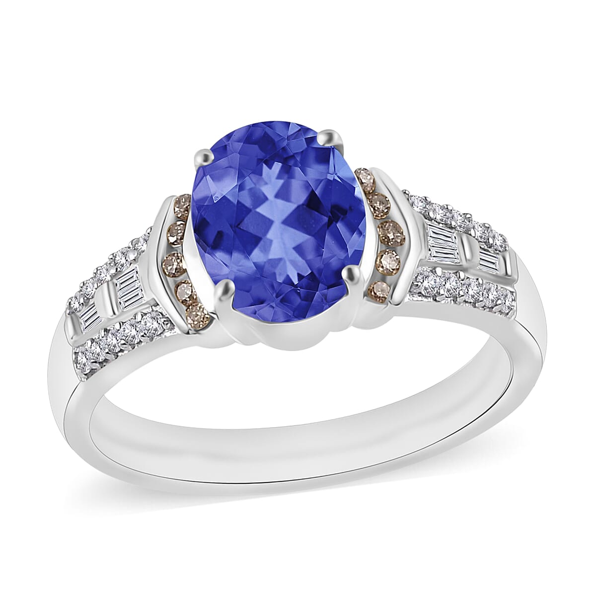 Luxoro AAA Tanzanite, Natural Champagne and White Diamond I2 2.23 ctw Ring in 14K White Gold (Size 7.5) (Del. in 10-12 Days)