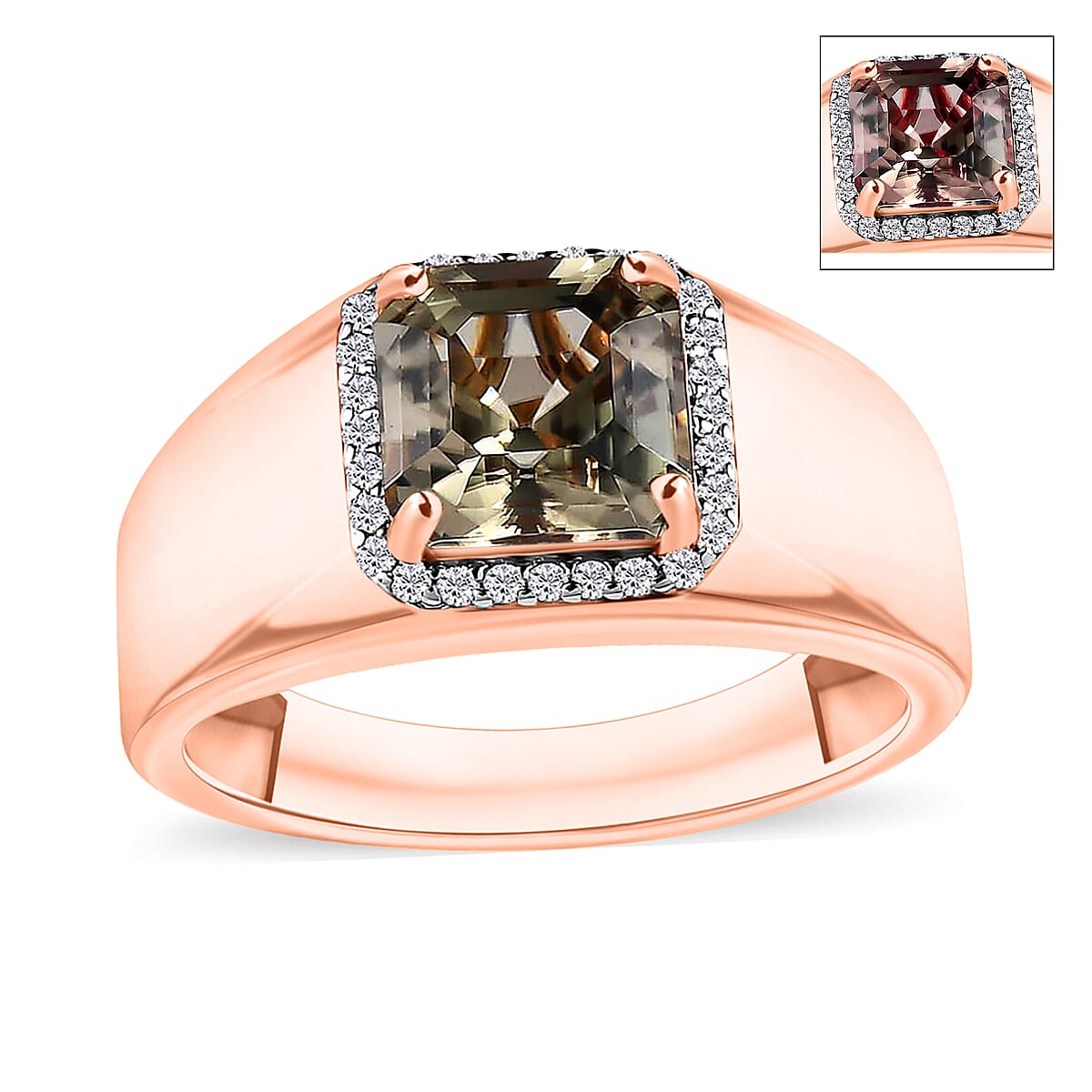 Luxoro AAA Turkizite and G-H I2 Diamond 3.00 ctw Mens Ring in 14K Rose Gold (Size 5.0) 8 Grams (Del. in 10-12 Days)