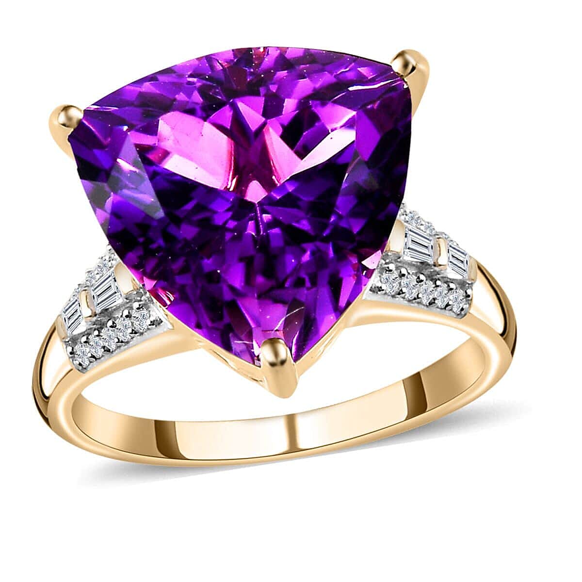 Luxoro AAA Zambian Amethyst and Moissanite 9.25 ctw Ring in 10K Yellow Gold (Size 8.0)