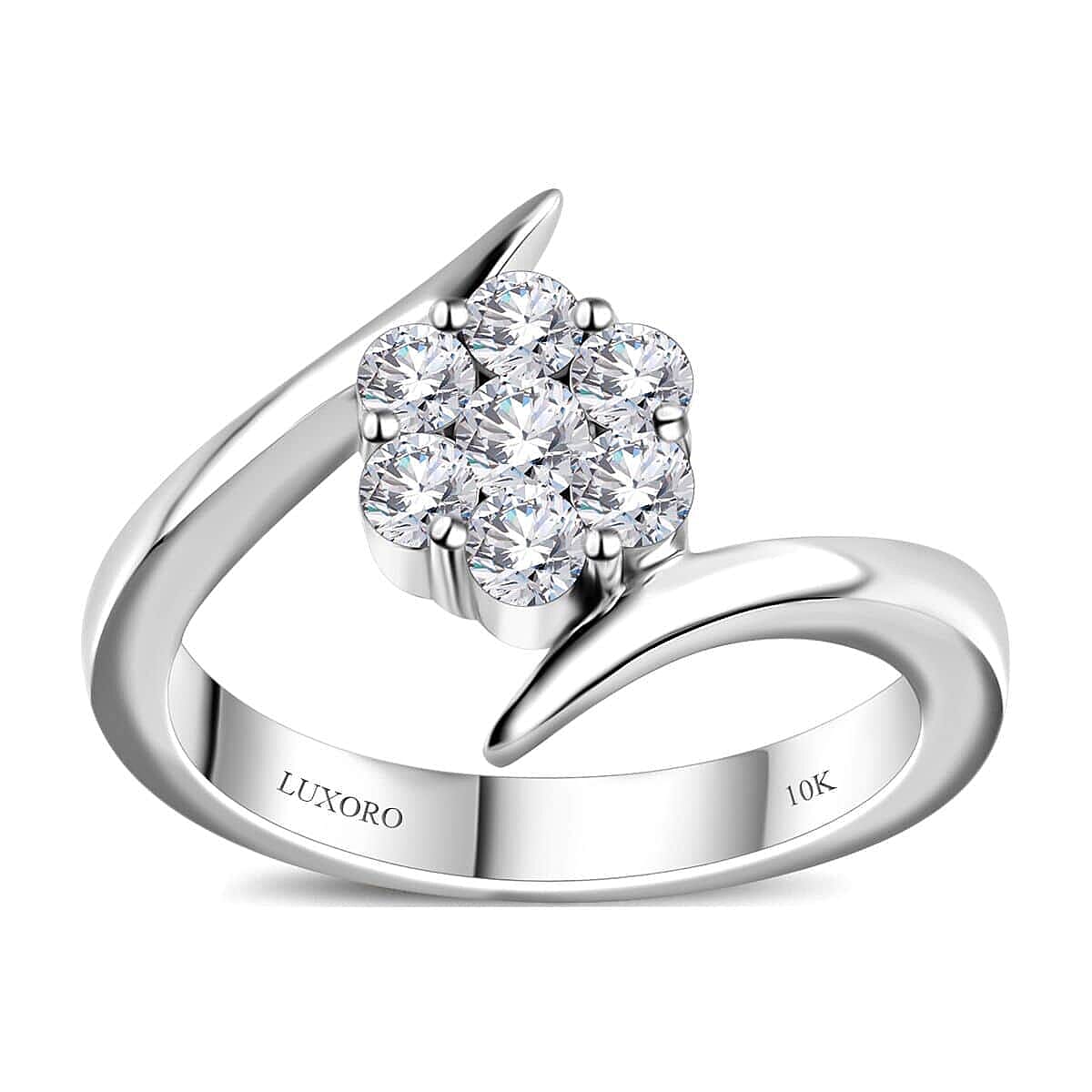Luxoro G-H I3 Diamond 0.50 ctw Bypass Floral Ring in 10K White Gold (Size 9.5)