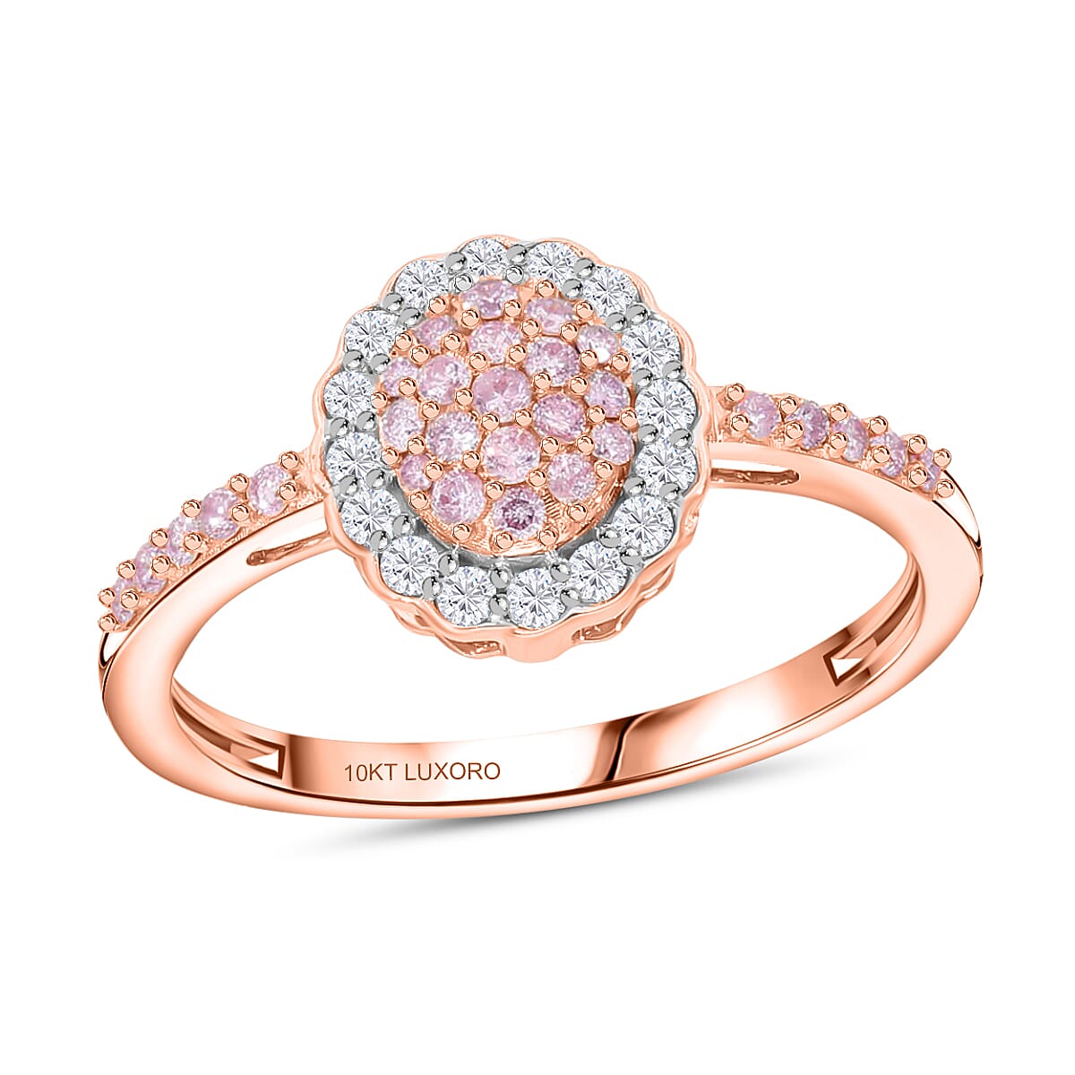 Luxoro I3 Natural Pink and White Diamond 0.50 ctw Floral Ring in 10K Rose Gold (Size 7.0)