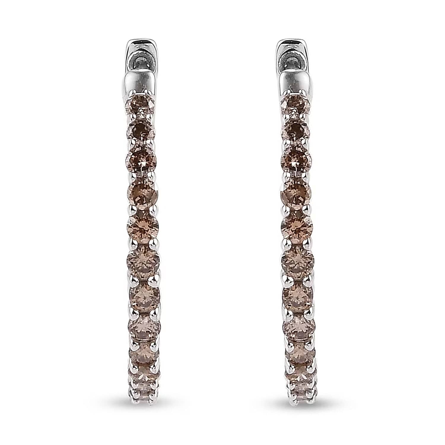 Luxoro Natural Champagne Diamond 1.00 ctw Hoop Earrings in 10K White Gold