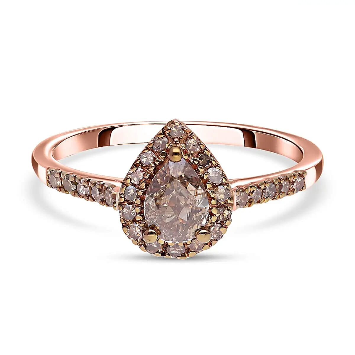 Luxoro Natural Champagne Diamond Ring ,10K Rose Gold Ring ,Natural Champagne Diamond Pear Shape Ring , Halo Ring , Wedding Ring , Engagement Ring 1.00 ctw (Size 9)