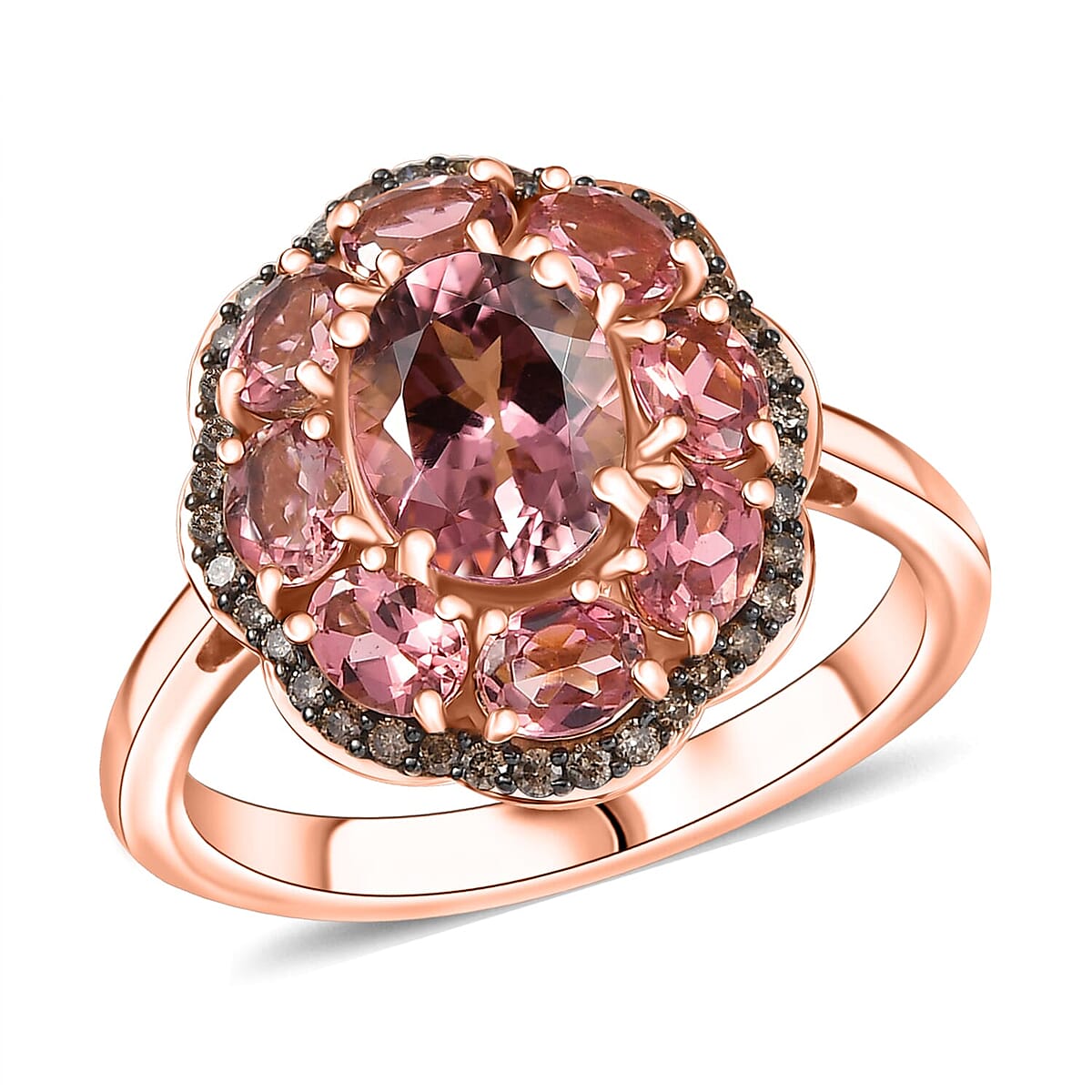 Luxoro Premium Blush Tourmaline and Natural Champagne Diamond 2.80 ctw Blush Bloom Ring in 10K Rose Gold (Size 6.5)