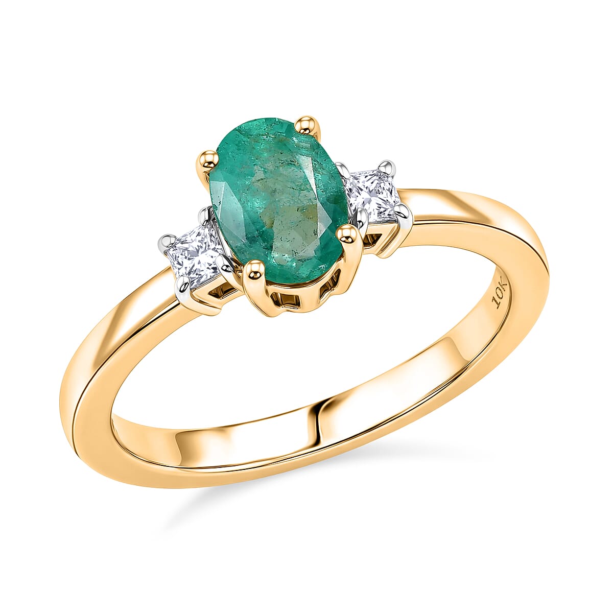 Luxoro Premium Boyaca Colombian Emerald and Diamond I2 0.90 ctw Verdant Flame Oval Ring in 10K Yellow Gold (Size 6.0)