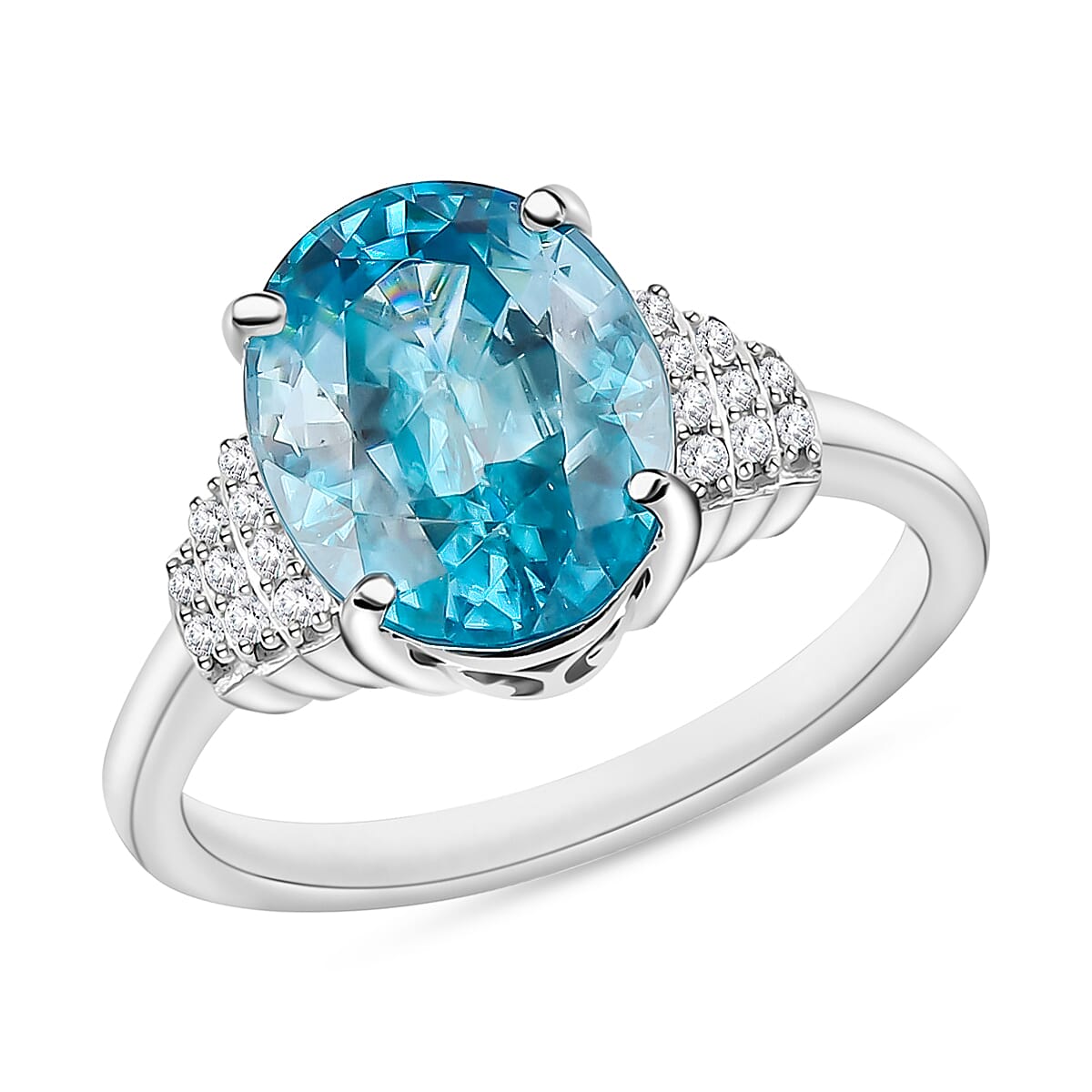 Luxoro Premium Cambodian Blue Zircon and G-H I2 Diamond 5.60 ctw Ring in 14K White Gold (Size 11.0) (Del. in 10-12 Days)