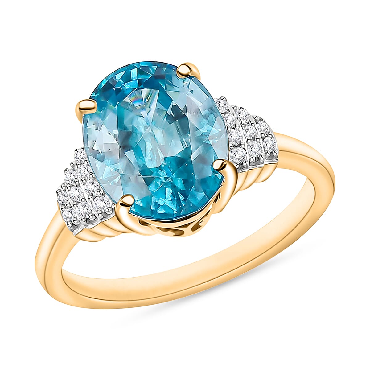 Luxoro Premium Cambodian Blue Zircon and G-H I2 Diamond Ring in 14K Yellow Gold (Size 11.0) 5.60 ctw (Del. in 10-12 Days)