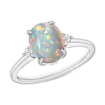 Luxoro Premium Ethiopian Welo Opal and G-H I1-I2 Diamond 1.30 ctw Ring in 14K White Gold (Size 4.0) 4 Grams (Del. in 10-12 Days)