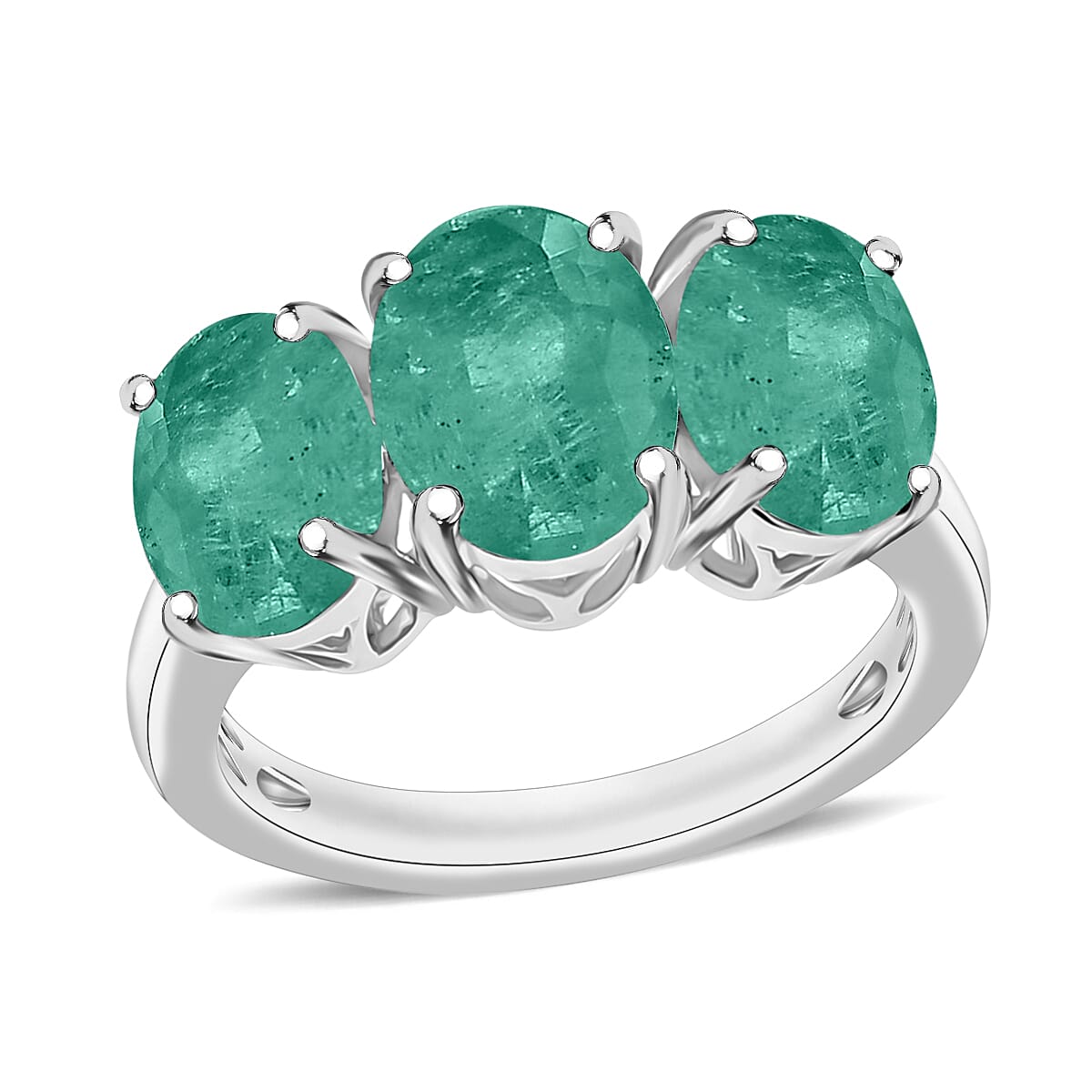 Luxoro Premium Kagem Zambian Emerald 4.20 ctw 3 Stone Ring in 14K White Gold (Size 6.5) 5.50 Grams (Del. in 10-12 Days)