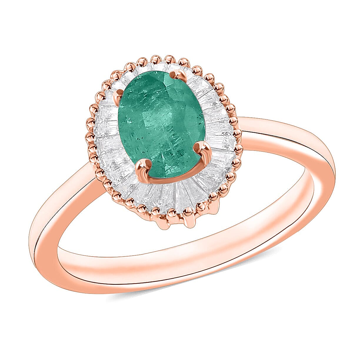 Luxoro Premium Kagem Zambian Emerald and G-H I1 Diamond 1.00 ctw Ring in 14K Rose Gold (Size 7.5) (Del. in 10-12 Days)