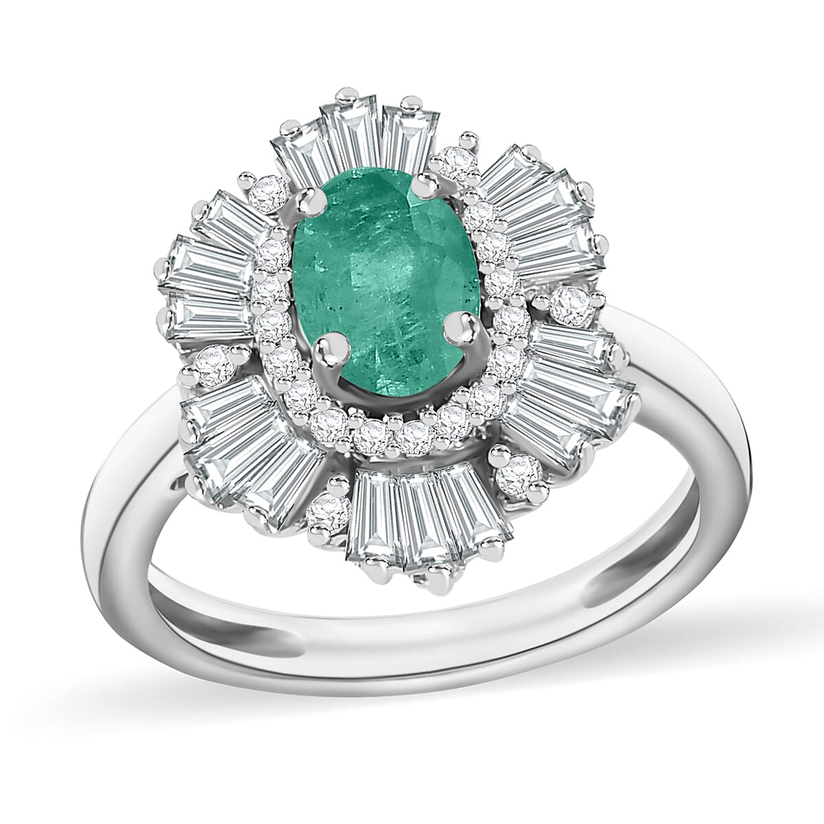 Luxoro Premium Kagem Zambian Emerald and G-H I1 Diamond 1.55 ctw Ring in 14K White Gold (Size 6.0) (Del. in 10-12 Days)