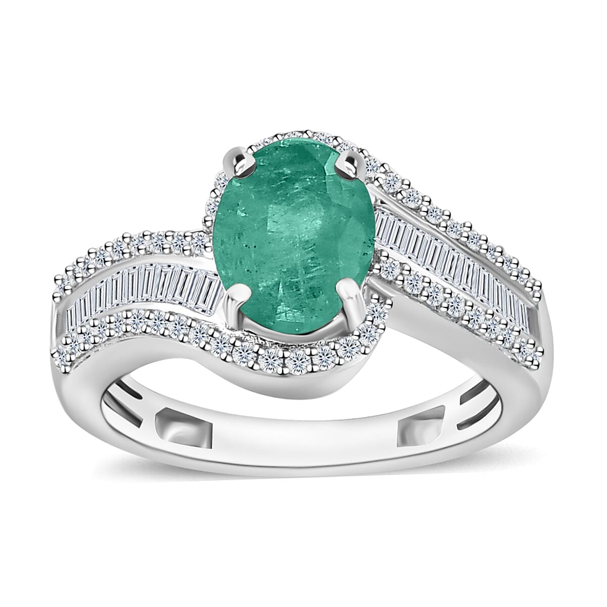 Luxoro Premium Kagem Zambian Emerald and G-H I1 Diamond 1.55 ctw Ring in 14K White Gold (Size 7.5) 4.20 Grams (Del. in 10-12 Days)