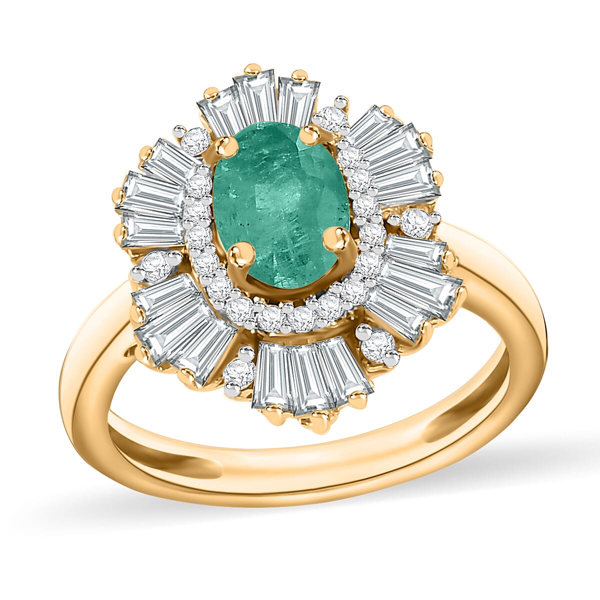 Luxoro Premium Kagem Zambian Emerald and G-H I1 Diamond 1.55 ctw Ring in 14K Yellow Gold (Size 10.5) (Del. in 10-12 Days)