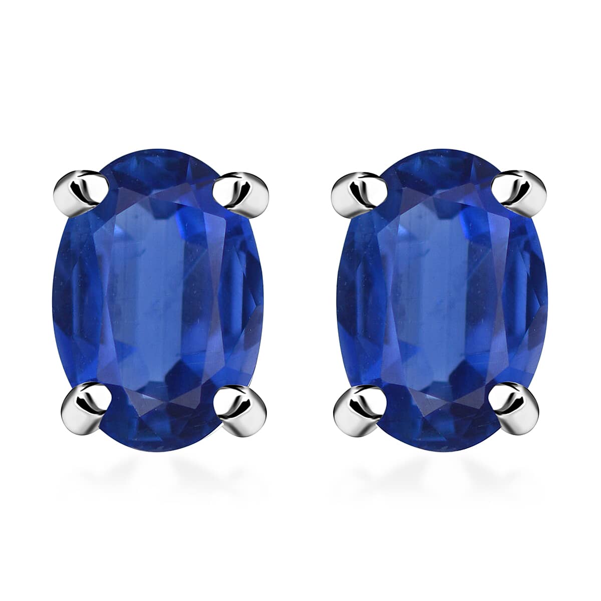 Luxoro Premium Kanchanaburi Blue Sapphire 1.20 ctw Solitaire Stud Earrings in 14K White Gold (Del. in 10-12 Days)