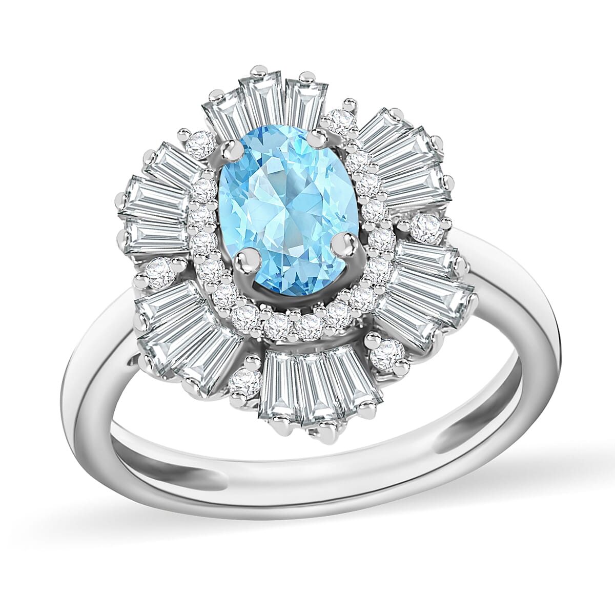 Luxoro Premium Mangoro Aquamarine and G-H I1 Diamond 1.60 ctw Ring in 14K White Gold (Size 4.5) (Del. in 10-12 Days)