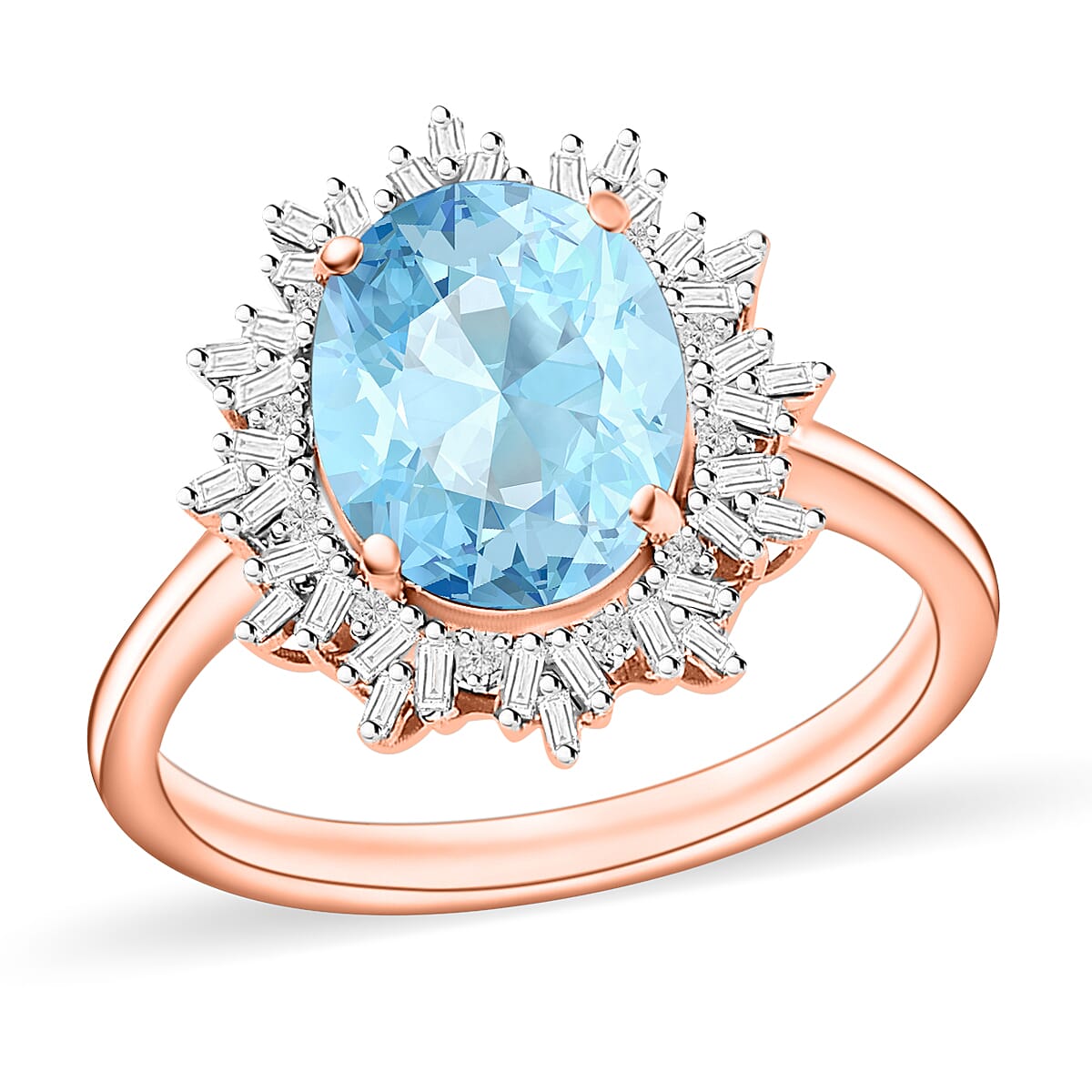 Luxoro Premium Mangoro Aquamarine and G-H I1 Diamond 5.30 ctw Ring in 14K Rose Gold 4.30 Grams (Del. in 10-12 Days)