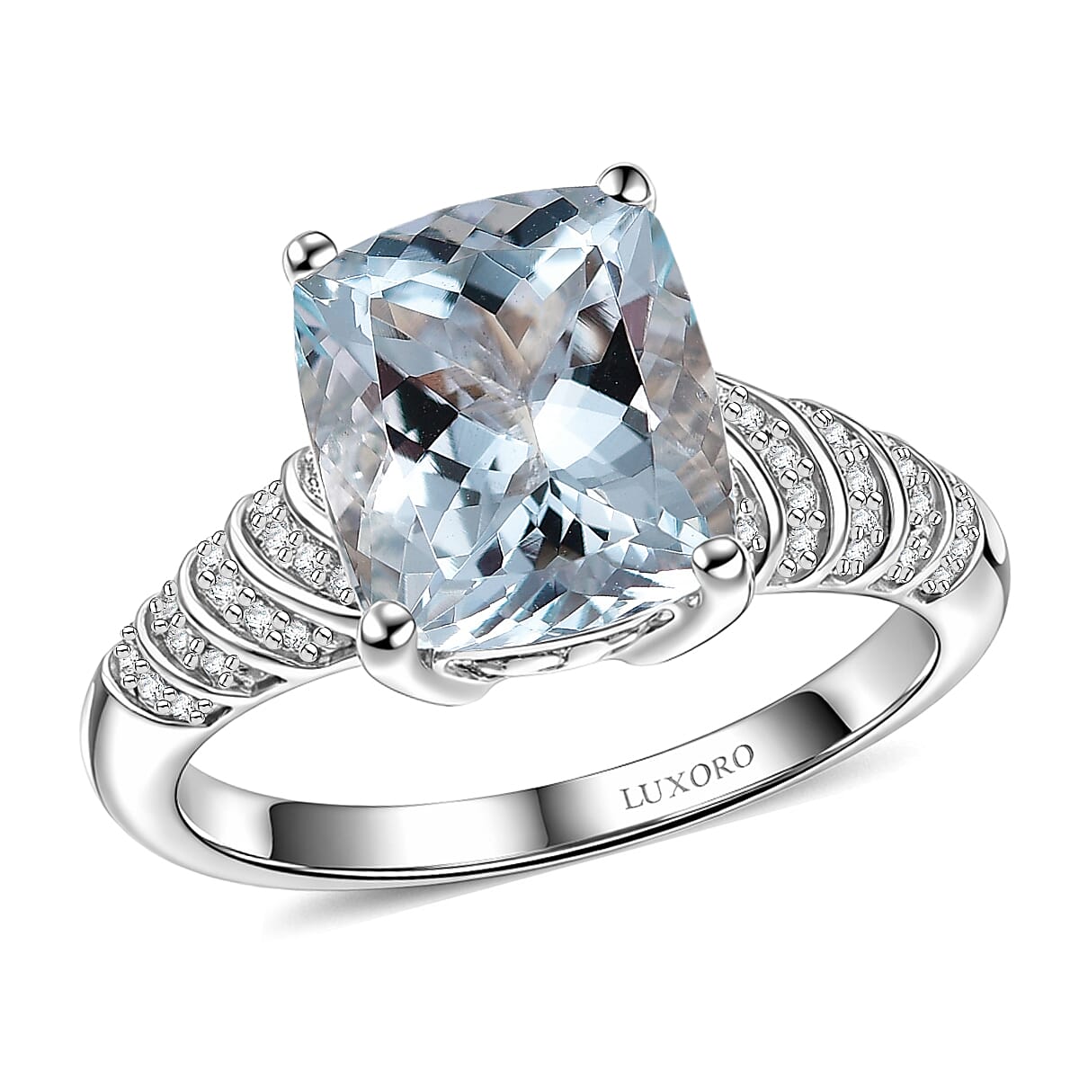 Luxoro Premium Mangoro Santo Aquamarine and Diamond I2 5.35 ctw Ring in 10K White Gold (Size 7.0) 4.28 Grams
