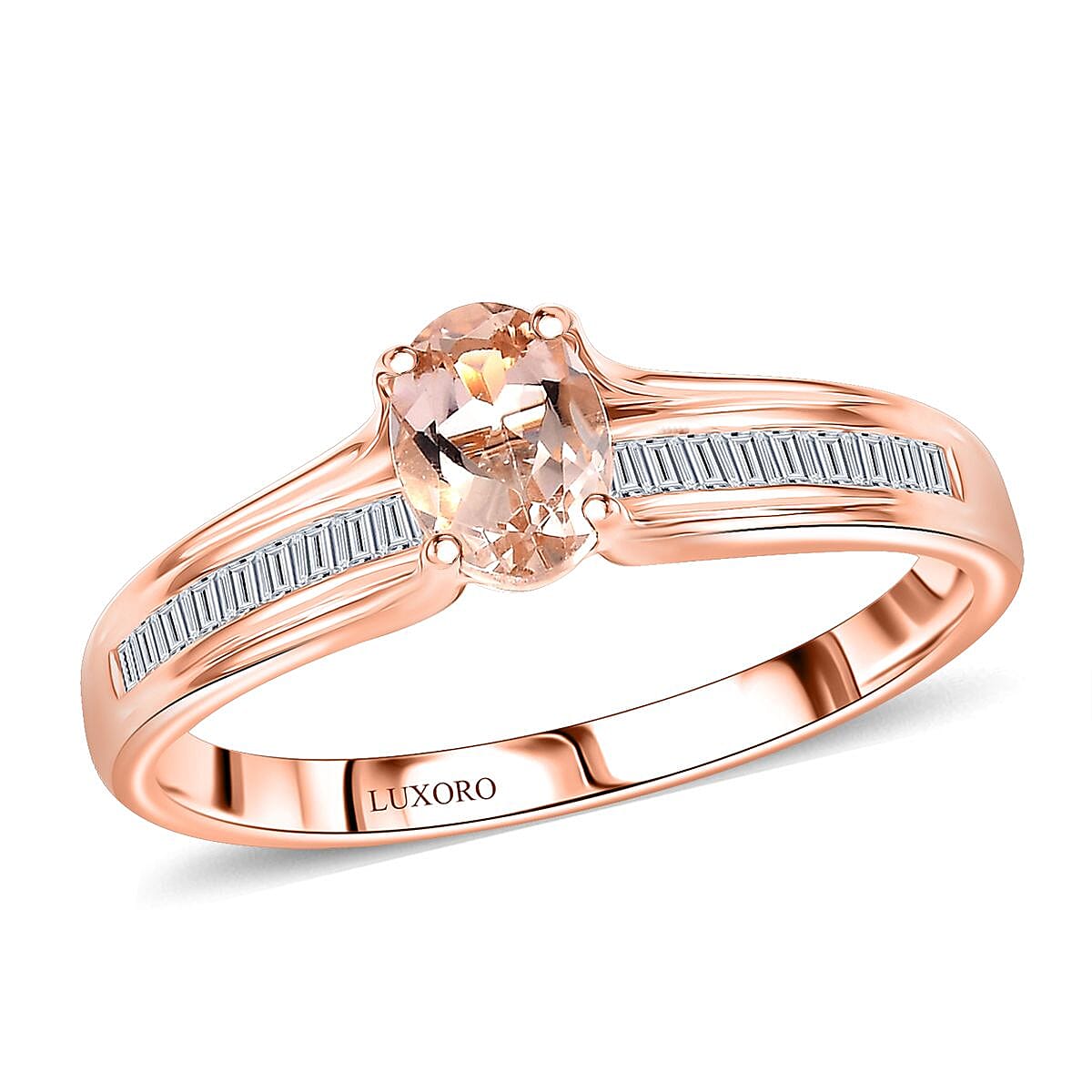 Luxoro Premium Marropino Morganite and G-H I1 Diamond 1.00 ctw Ring in 14K Rose Gold (Size 11.0) 4 Grams (Del. in 10-12 Days)