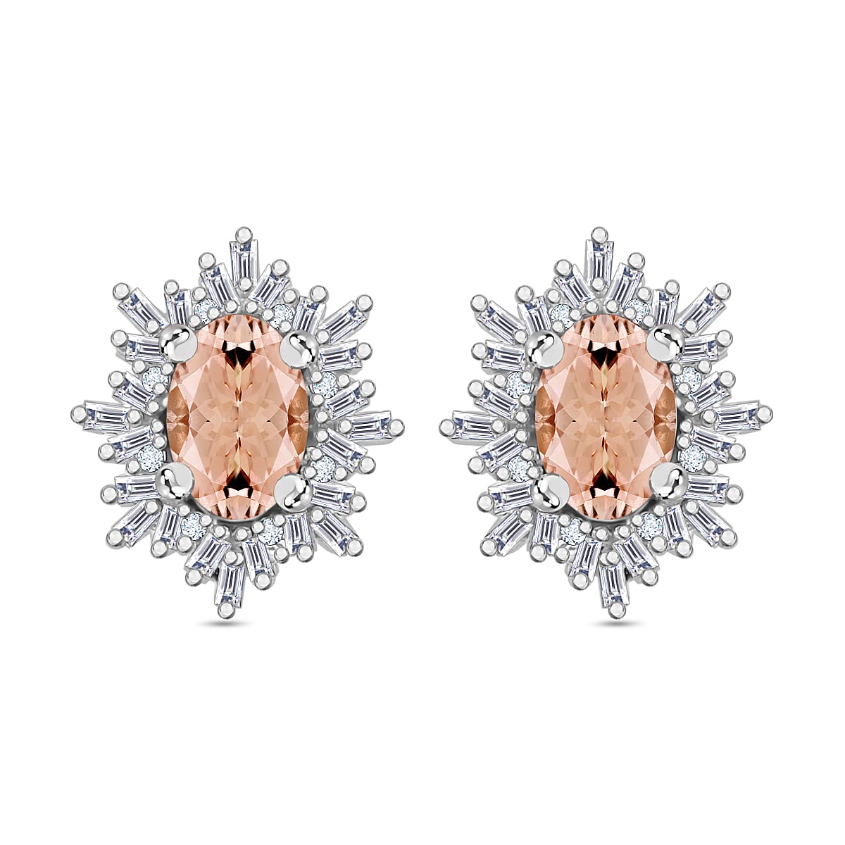 Luxoro Premium Marropino Morganite and G-H I1 Diamond 1.15 ctw Stud Earrings in 14K White Gold (Del. in 10-12 Days)