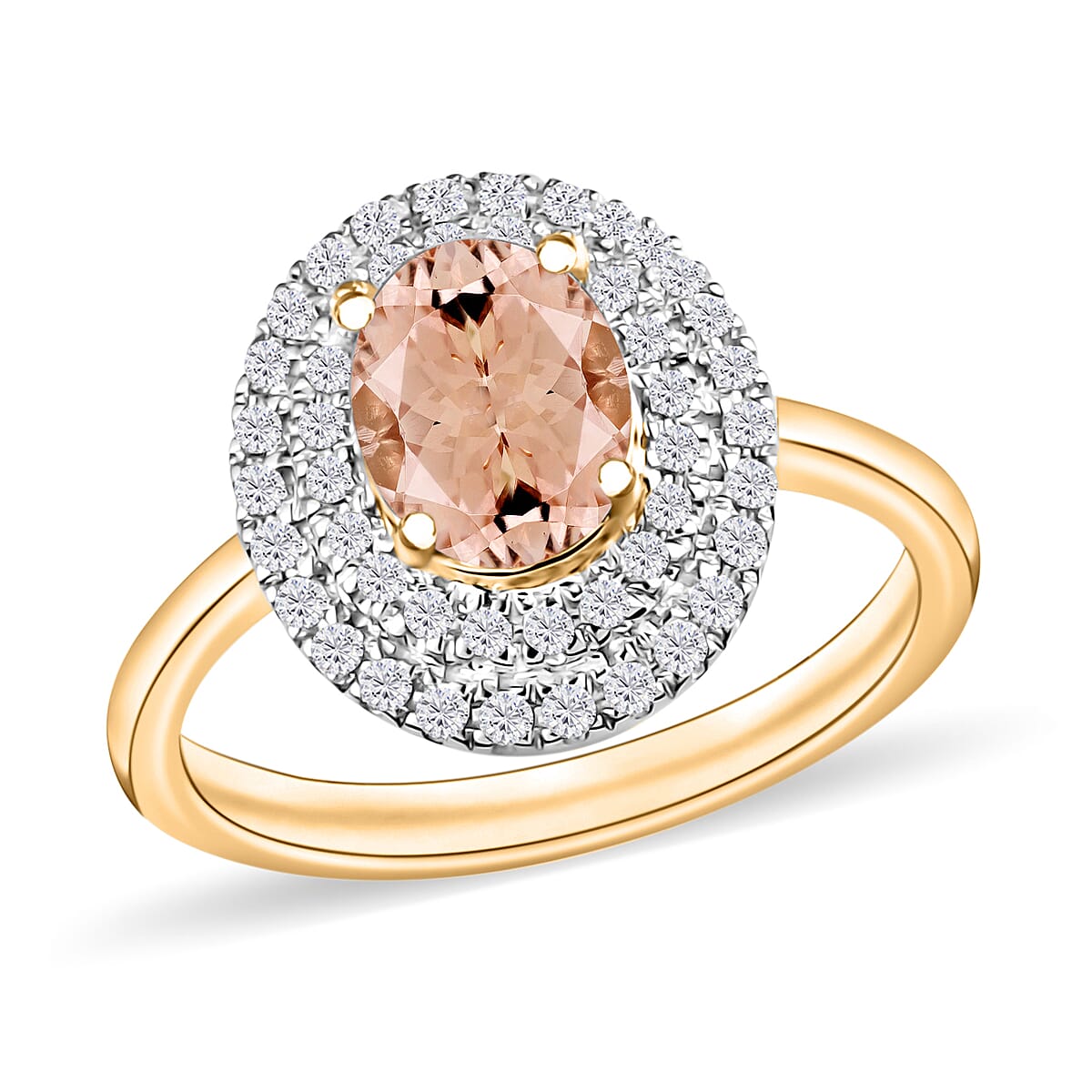 Luxoro Premium Marropino Morganite and G-H I1 Diamond 1.60 ctw Double Halo Ring in 14K Yellow Gold (Size 5.0) (Del. in 10-12 Days)