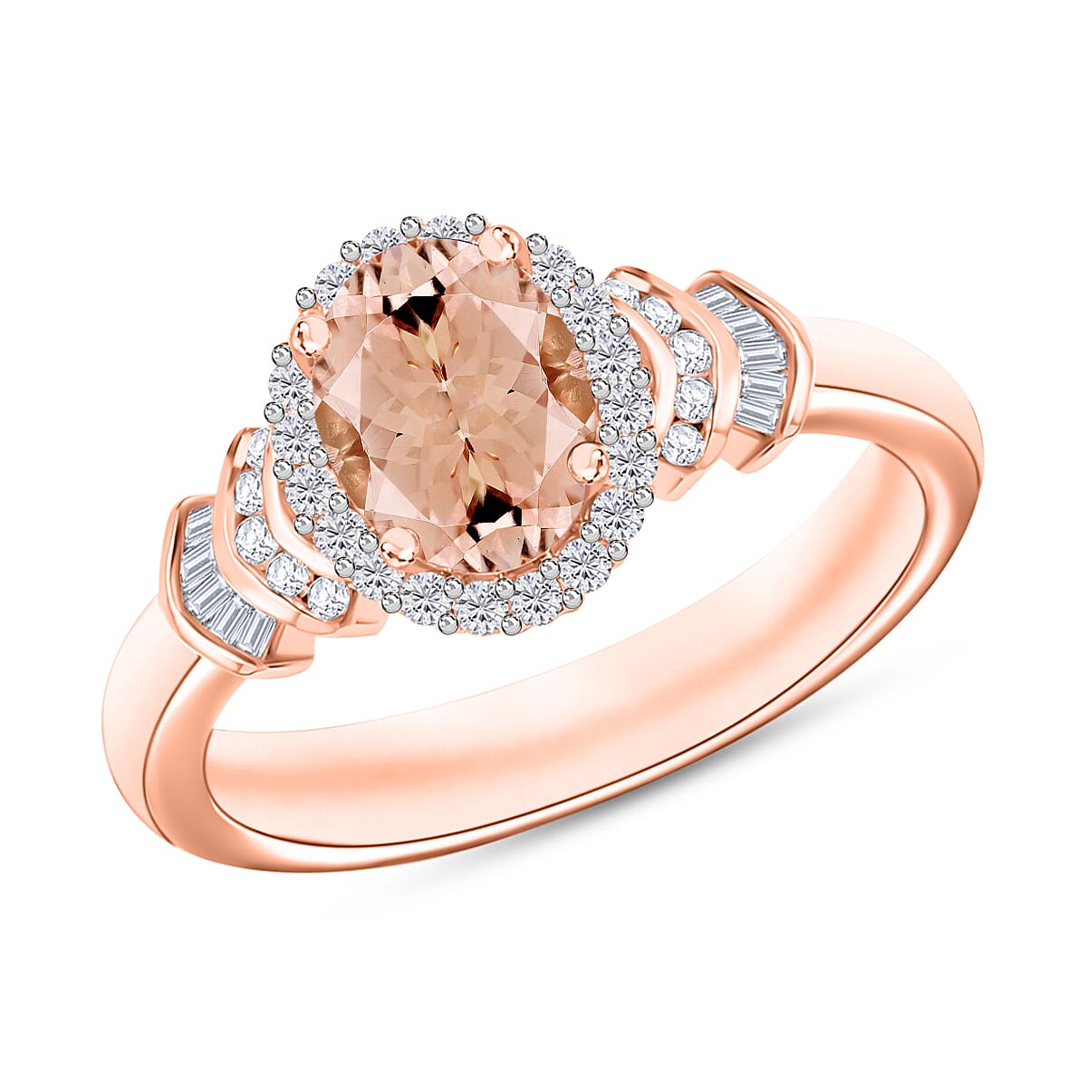 Luxoro Premium Marropino Morganite and G-H I1 Diamond 1.60 ctw Ring in 14K Rose Gold (Size 10.5) (Del. in 10-12 Days)