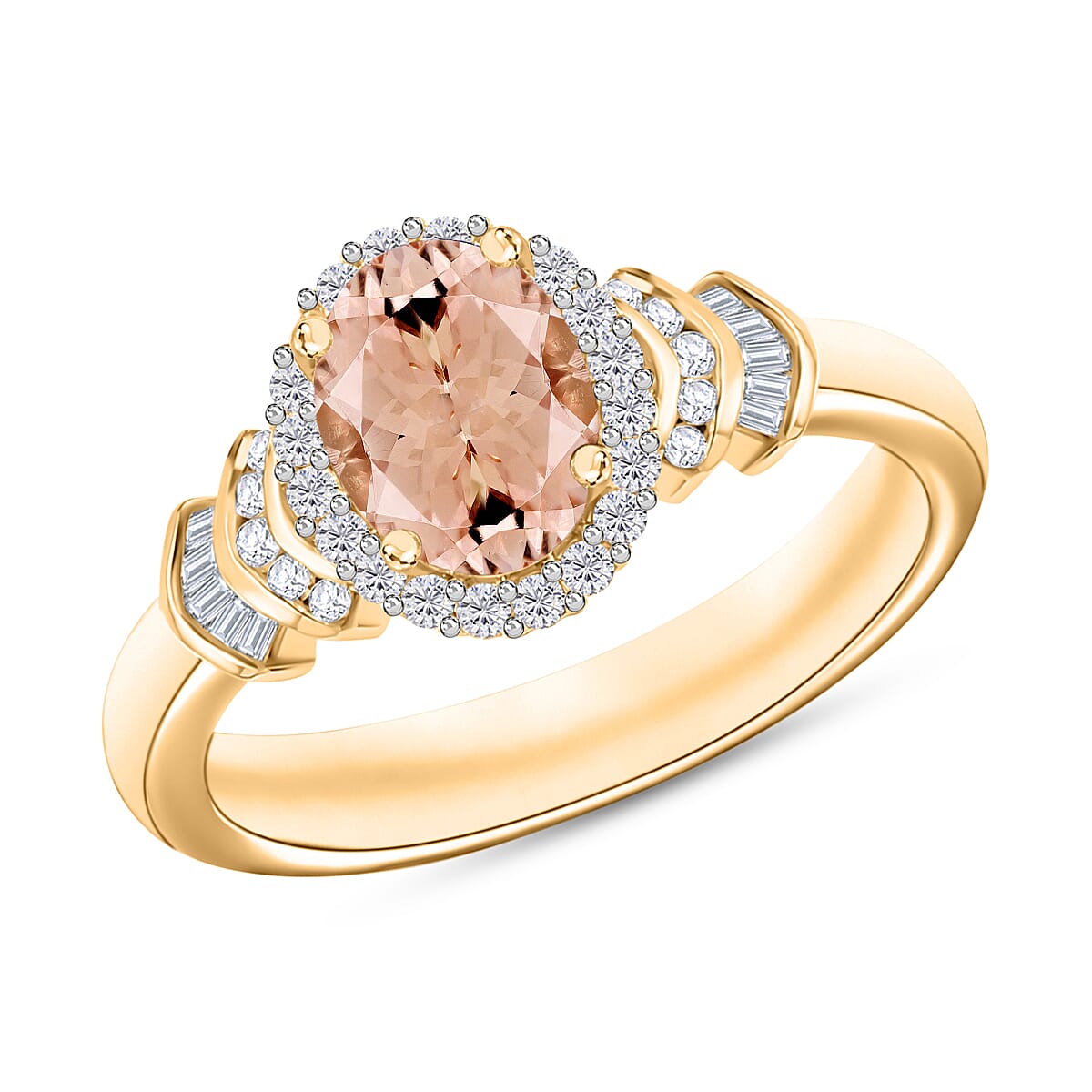 Shine brilliantly with the Marropino morganite ring in durable metal. Youβll love how its halo design highlights the warm glow of the peach gemstone. This elegant custom ring captivates attention and effortlessly elevates your refined style.β