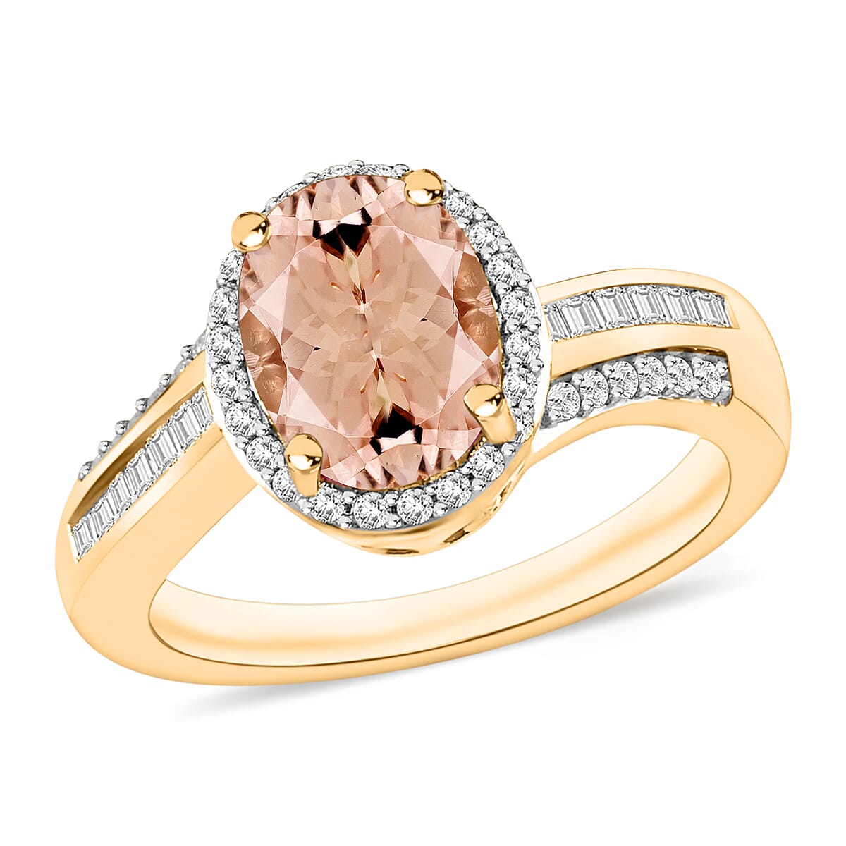 Luxoro Premium Marropino Morganite and G-H I1 Diamond 2.68 ctw Ring in 14K Yellow Gold (Size 5.5) (Del. in 10-12 Days)