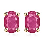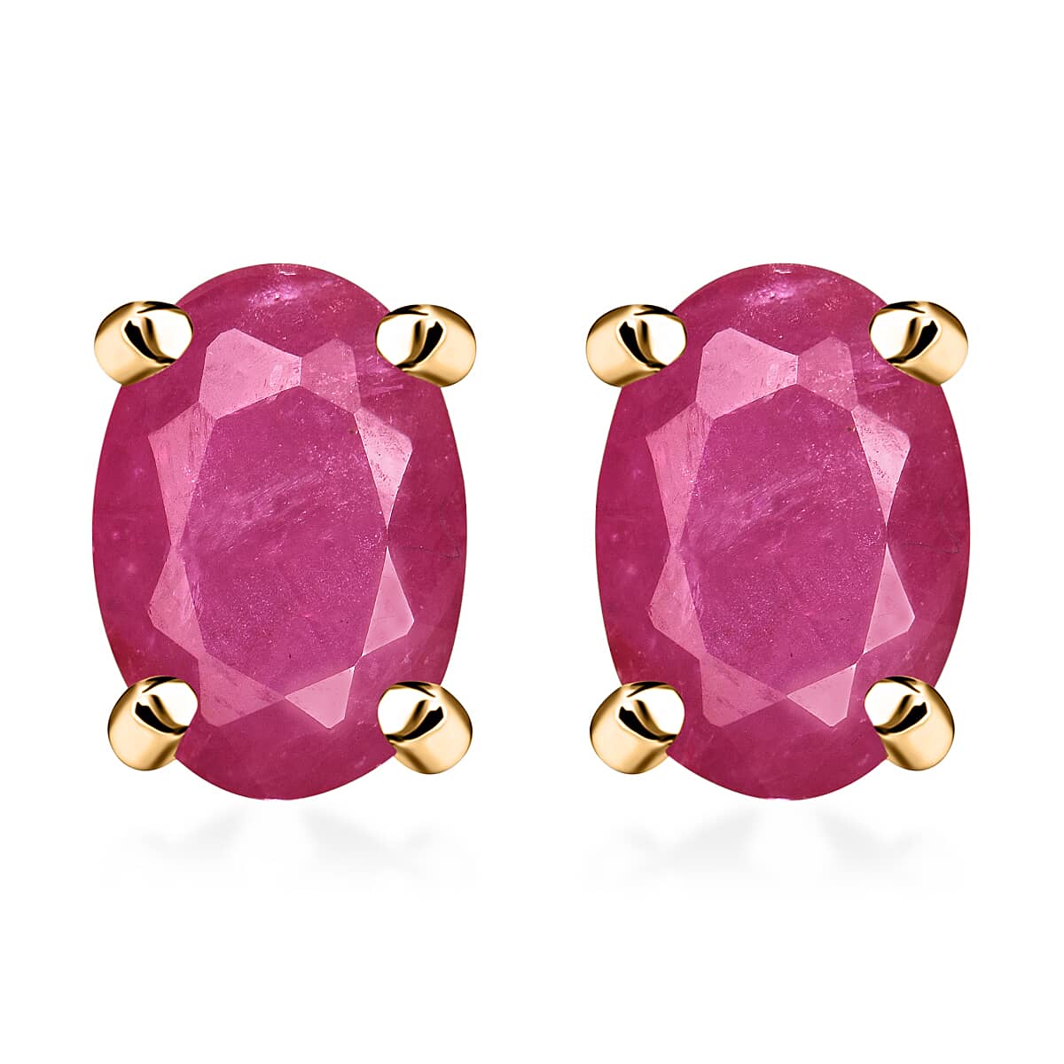 Luxoro Premium Mozambique Ruby 1.16 ctw Solitaire Stud Earrings in 14K Yellow Gold (Del. in 10-12 Days)