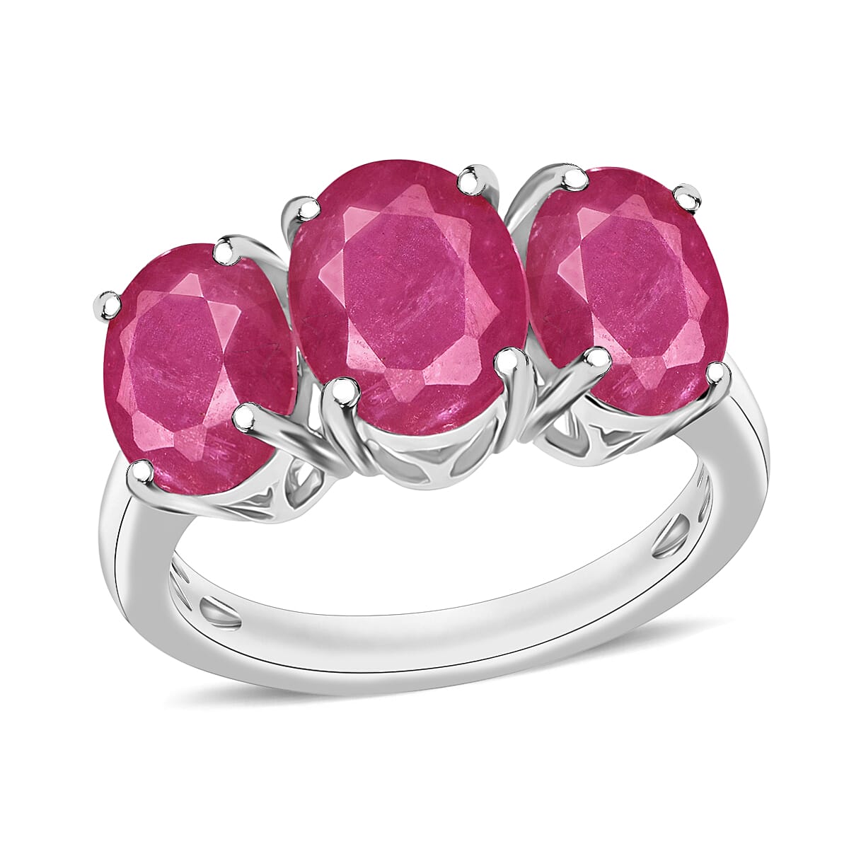 This Mozambique ruby ring for women features a timeless trilogy design, symbolizing the past, present, and future. The ring is offered in a variety of durable metal and showcases three Mozambique rubies, each set in prongs to ensure maximum brilliance. The design emphasizes both classic aesthetics and enduring quality. Customization options are available, including different gemstone grades, ring sizes, and metal choices, allowing you to tailor the ring to your specific preferences.
