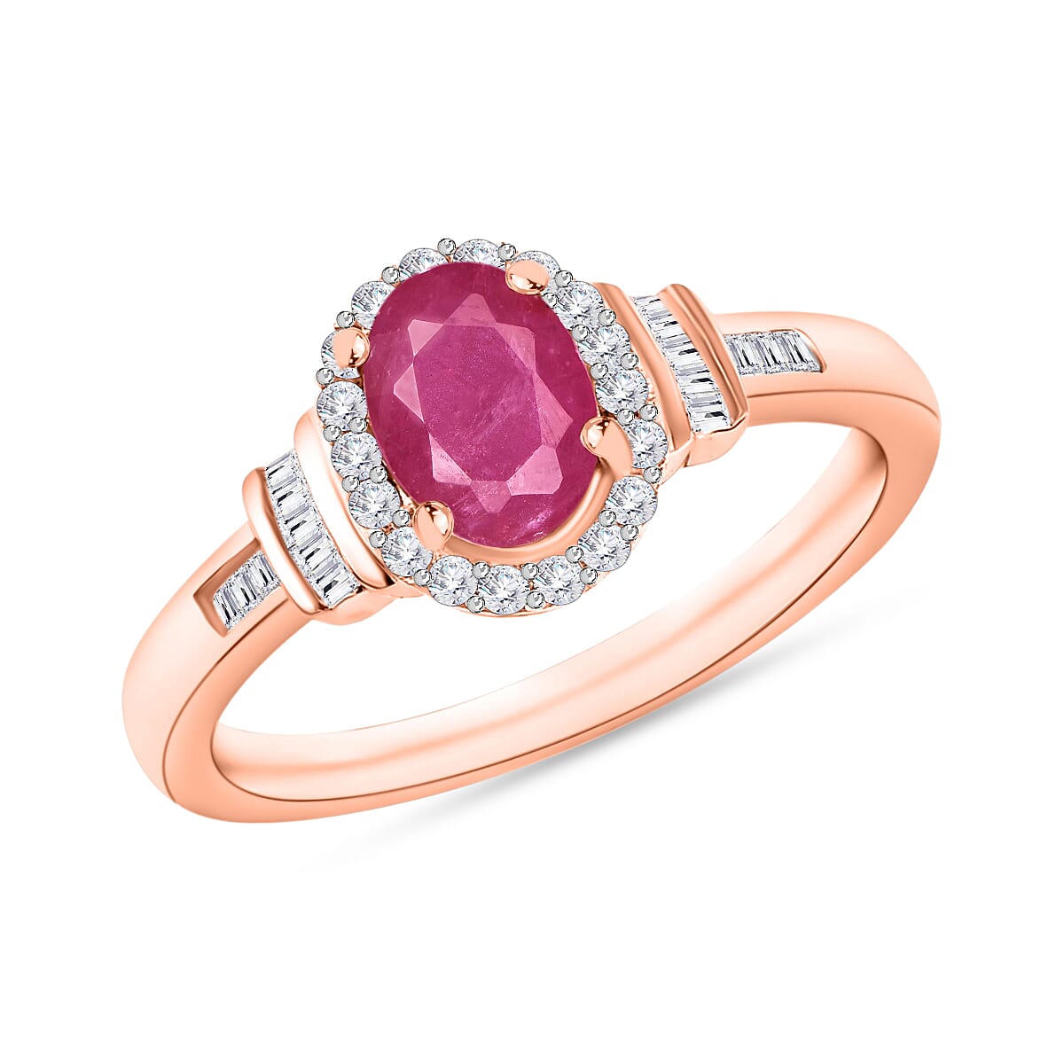 Luxoro Premium Mozambique Ruby and G-H I1 Diamond 1.30 ctw Ring in 14K Rose Gold (Size 8.5) (Del. in 10-12 Days)