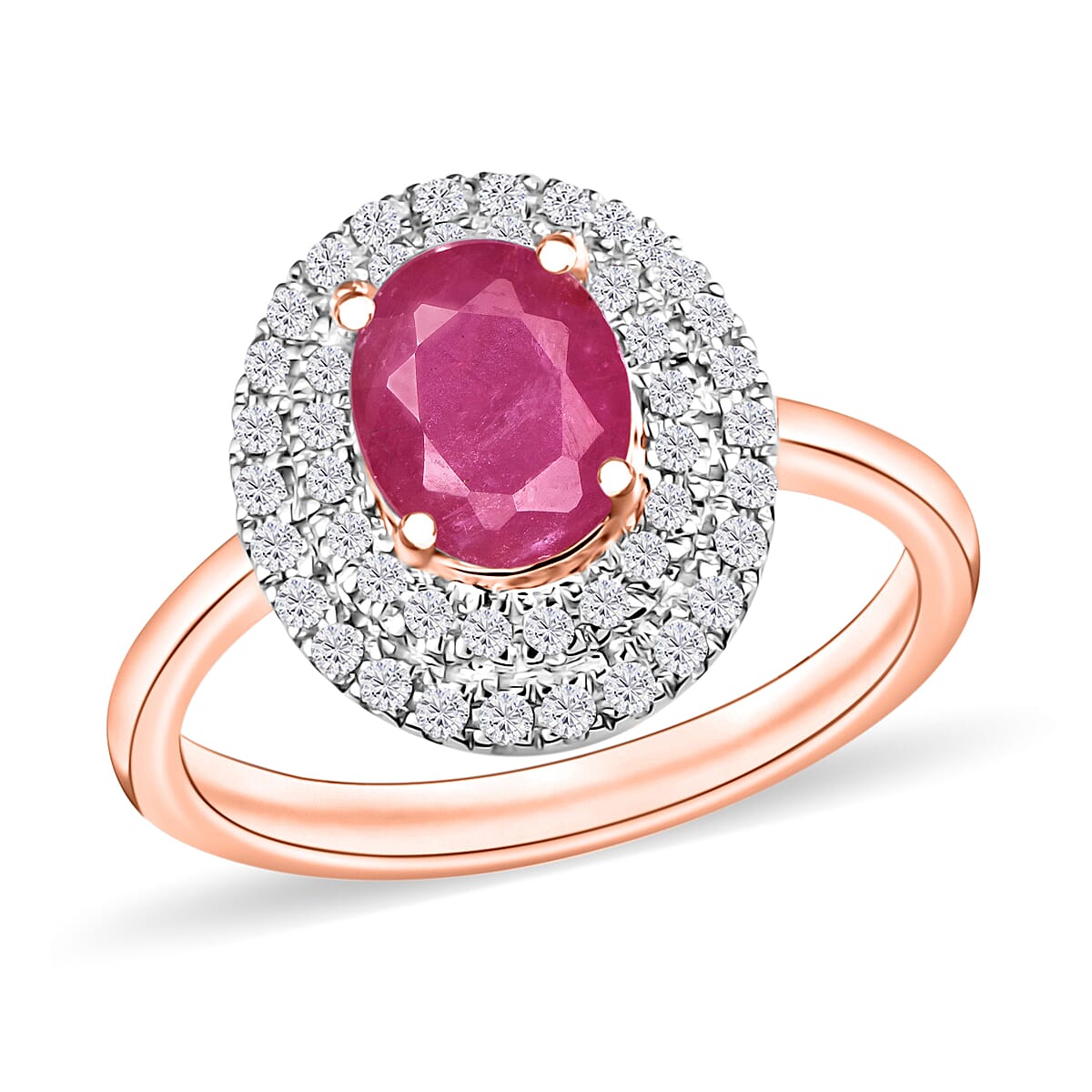 Luxoro Premium Mozambique Ruby and G-H I1 Diamond 1.85 ctw Double Halo Ring in 14K Rose Gold (Size 6.0) (Del. in 10-12 Days)