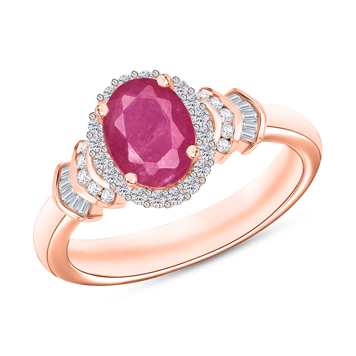 Luxoro Premium Mozambique Ruby and G-H I1 Diamond 1.85 ctw Ring in 14K Rose Gold (Size 5.5) (Del. in 10-12 Days)