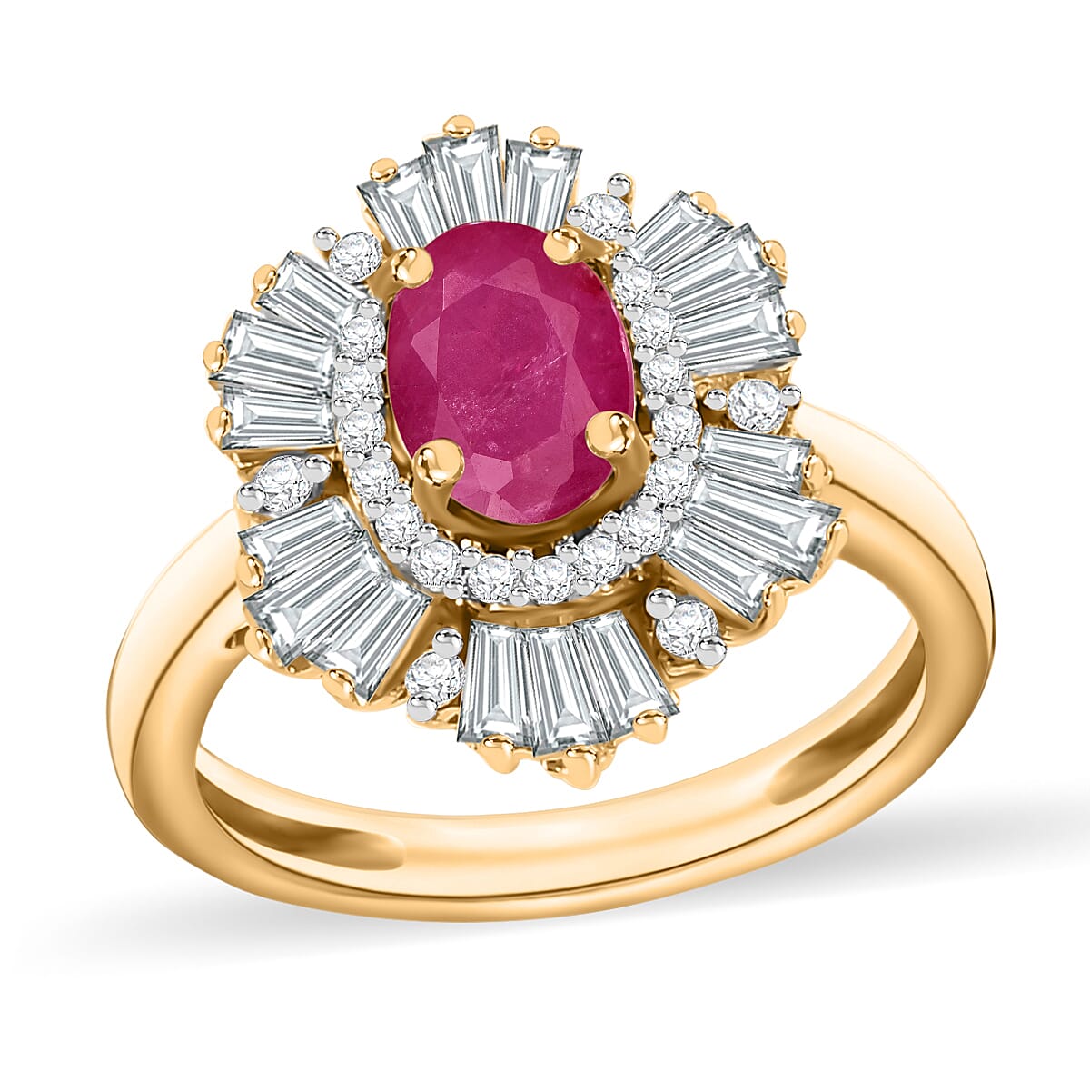 Luxoro Premium Mozambique Ruby and G-H I1 Diamond 1.85 ctw Snowflake Ring in 14K Yellow Gold (Size 12.0) (Del. in 10-12 Days)