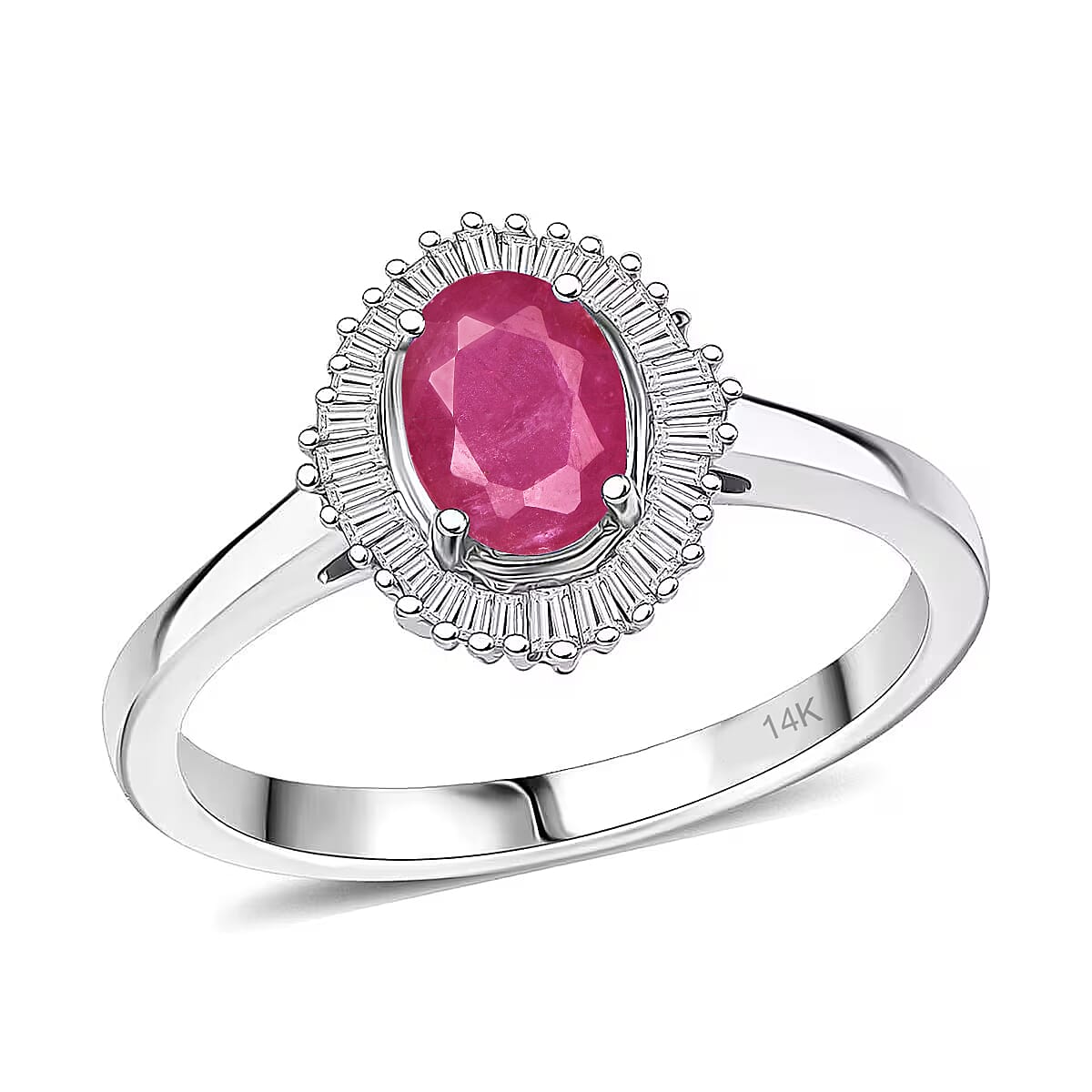 Luxoro Premium Mozambique Ruby and I2 Diamond 1.30 ctw Ring in 14K White Gold (Size 5.5)