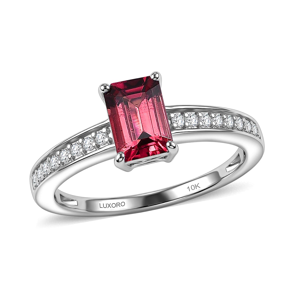 Luxoro Premium Ouro Fino Rubellite and Diamond I2 1.25 ctw Ring in 10K White Gold (Size 8.5)