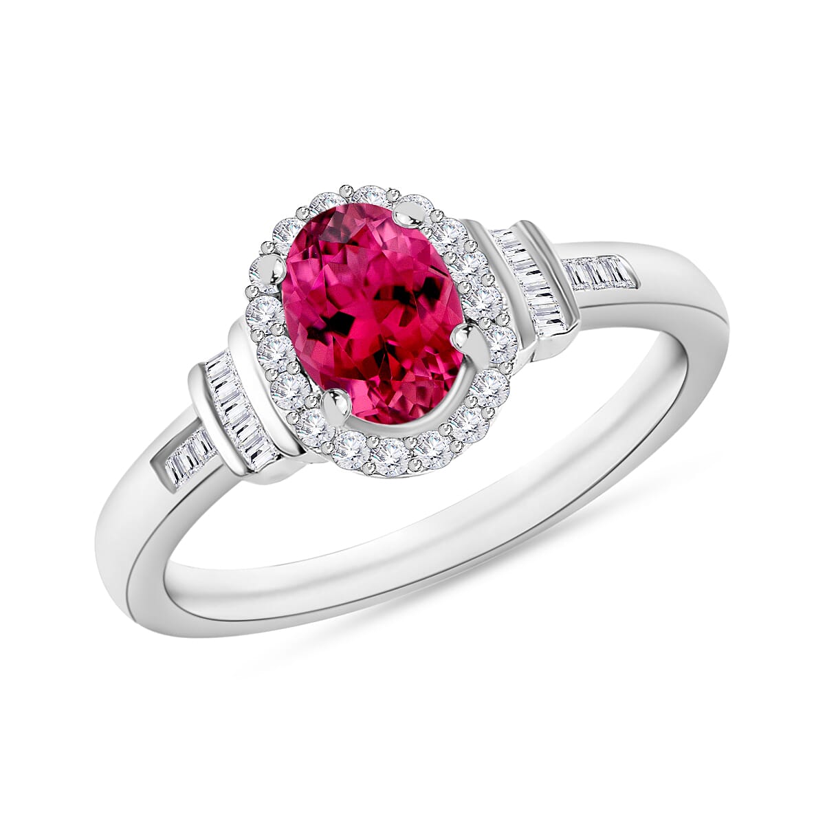 Luxoro Premium Ouro Fino Rubellite and G-H I1 Diamond 1.00 ctw Ring in 14K White Gold (Size 5.0) (Del. in 10-12 Days)
