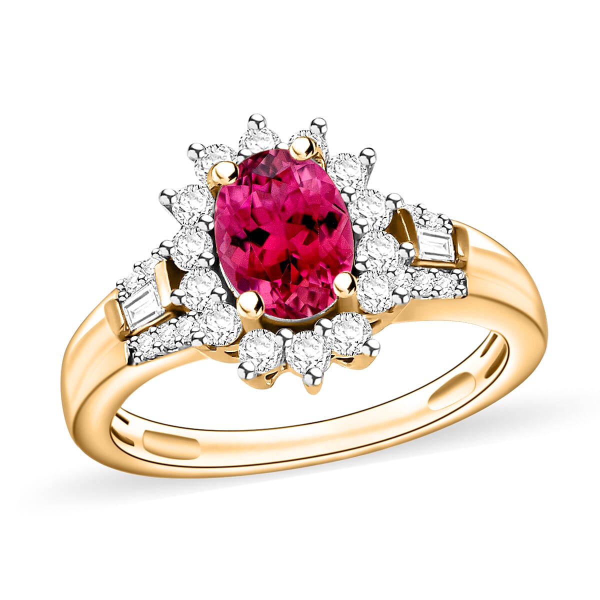 Luxoro Premium Ouro Fino Rubellite and G-H I1 Diamond 1.20 ctw Ring in 14K Yellow Gold (Size 10.0) (Del. in 10-12 Days)
