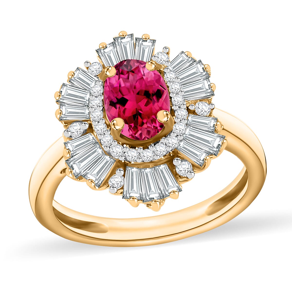Luxoro Premium Ouro Fino Rubellite and G-H I1 Diamond 1.60 ctw Ring in 14K Yellow Gold (Size 5.0) (Del. in 10-12 Days)