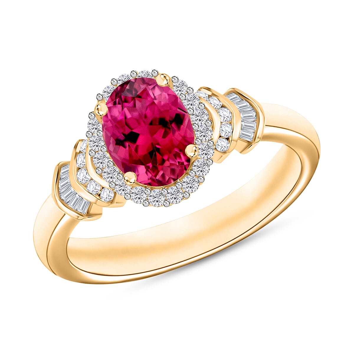 Luxoro Premium Ouro Fino Rubellite and G-H I1 Diamond 1.60 ctw Ring in 14K Yellow Gold (Size 5.5) (Del. in 10-12 Days)