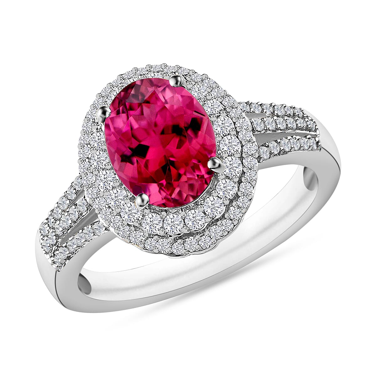 Luxoro Premium Ouro Fino Rubellite and G-H I1 Diamond 3.00 ctw Ring in 14K White Gold (Del. in 10-12 Days)