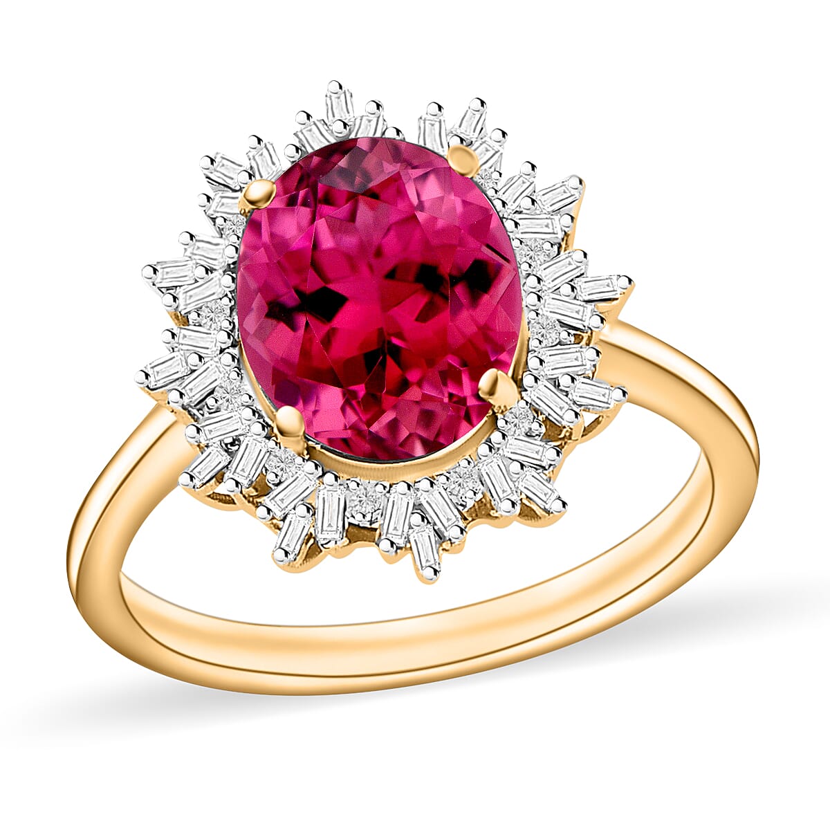 Luxoro Premium Ouro Fino Rubellite and G-H I1 Diamond 3.29 ctw Ring in 14K Yellow Gold (Size 10.0) 2.95 Grams (Del. in 10-12 Days)
