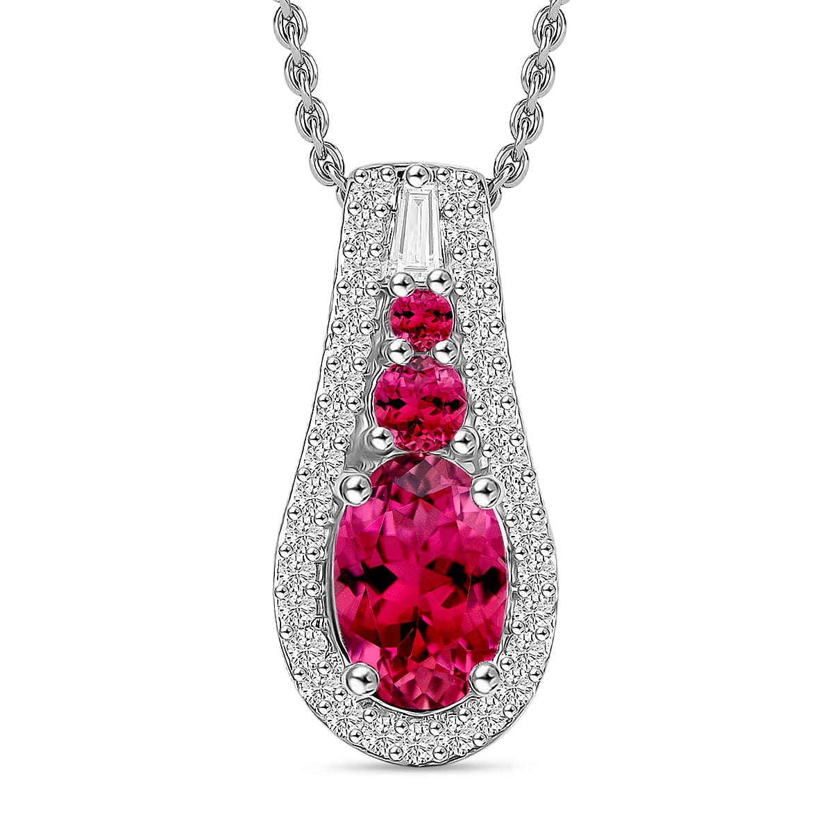 Luxoro Premium Ouro Fino Rubellite and I2 Diamond 1.11 ctw Pendant Necklace in 10K White Gold 20 Inches