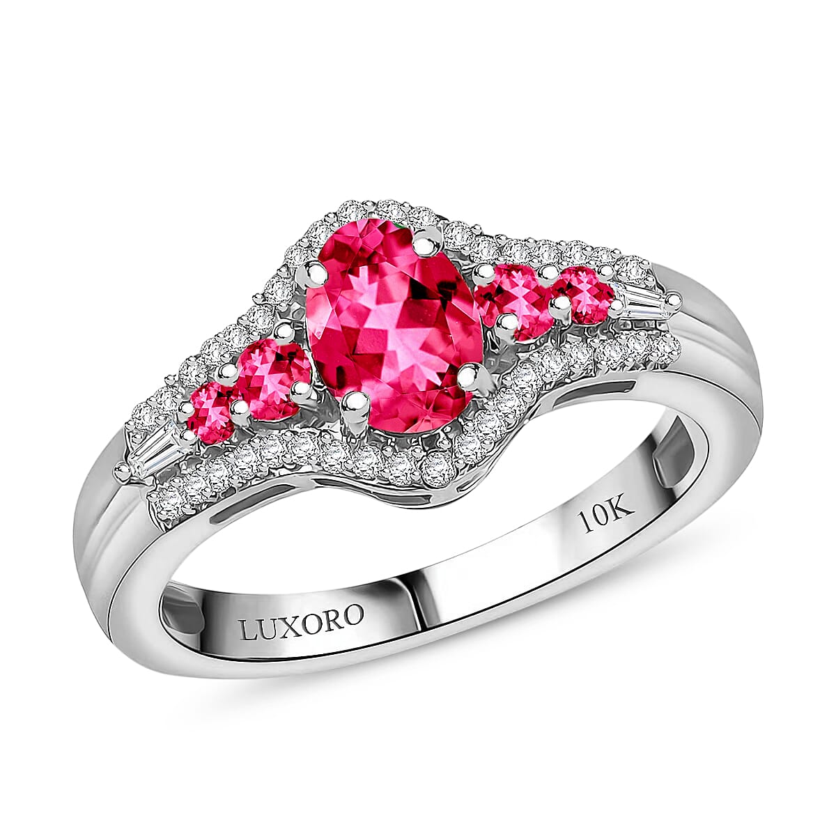 Luxoro Premium Ouro Fino Rubellite and I2 Diamond 1.27 ctw Ring in 10K White Gold (Size 10) 1