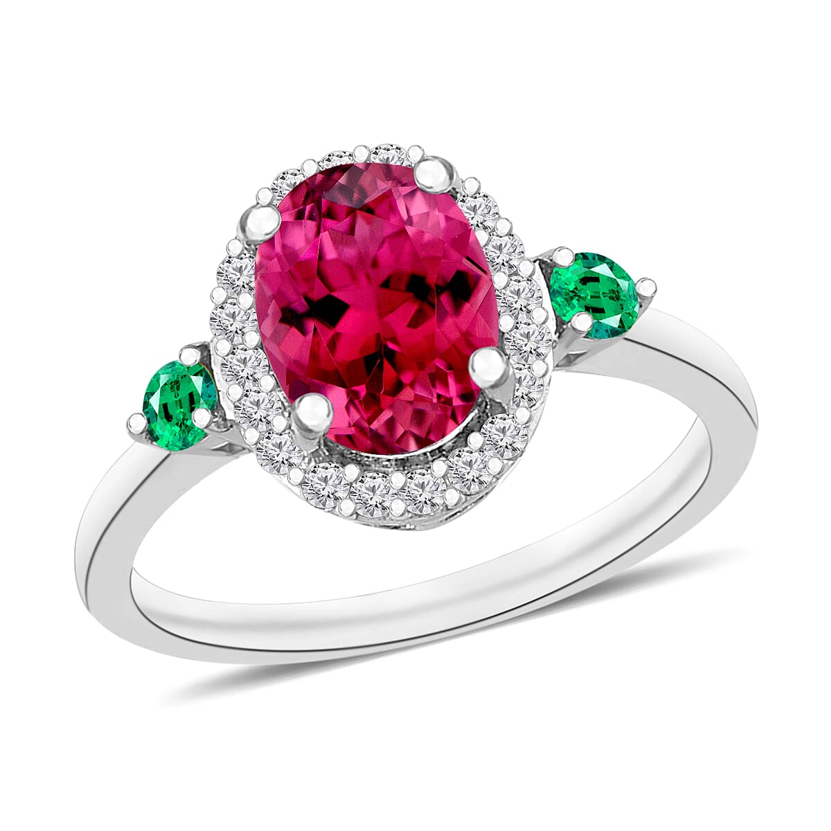 Luxoro Premium Ouro Fino Rubellite, Boyaca Colombian Emerald and G-H I1 Diamond 1.65 ctw Ring in 14K White Gold (Size 7.5) (Del. in 10-12 Days)