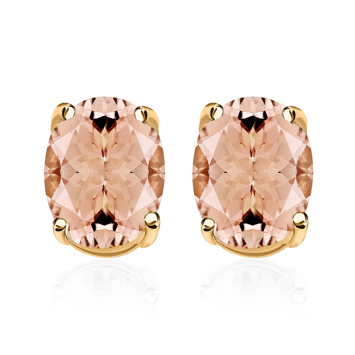 Luxoro Premium Pink Morganite 2.60 ctw Solitaire Stud Earrings 14K Yellow Gold (Del. in 10-12 Days)